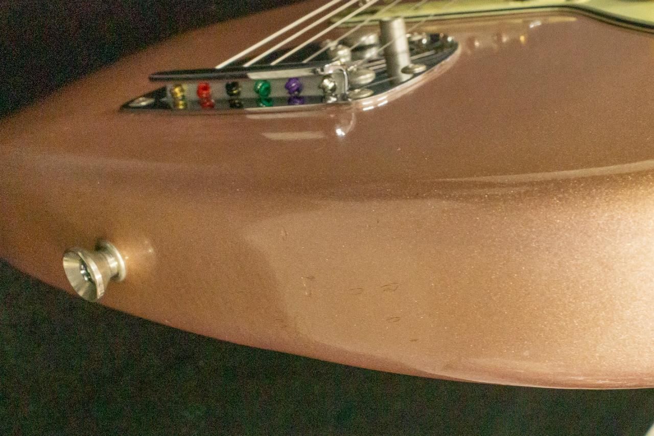ボディや塗装面の状態は、小さな打痕が多数ございます。指板に小さな傷あり、金属パーツに傷があります。