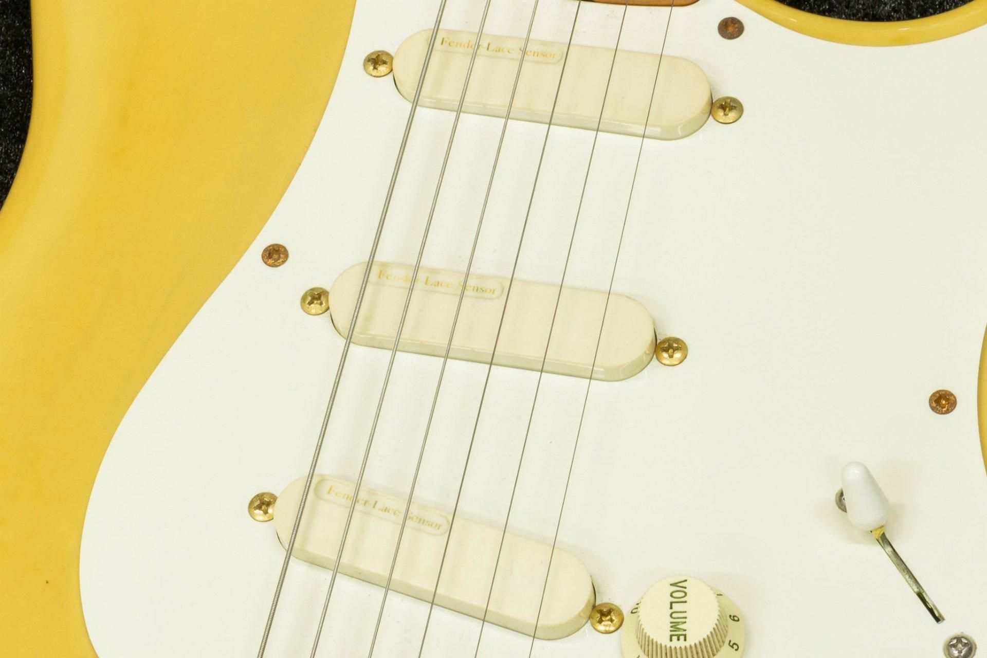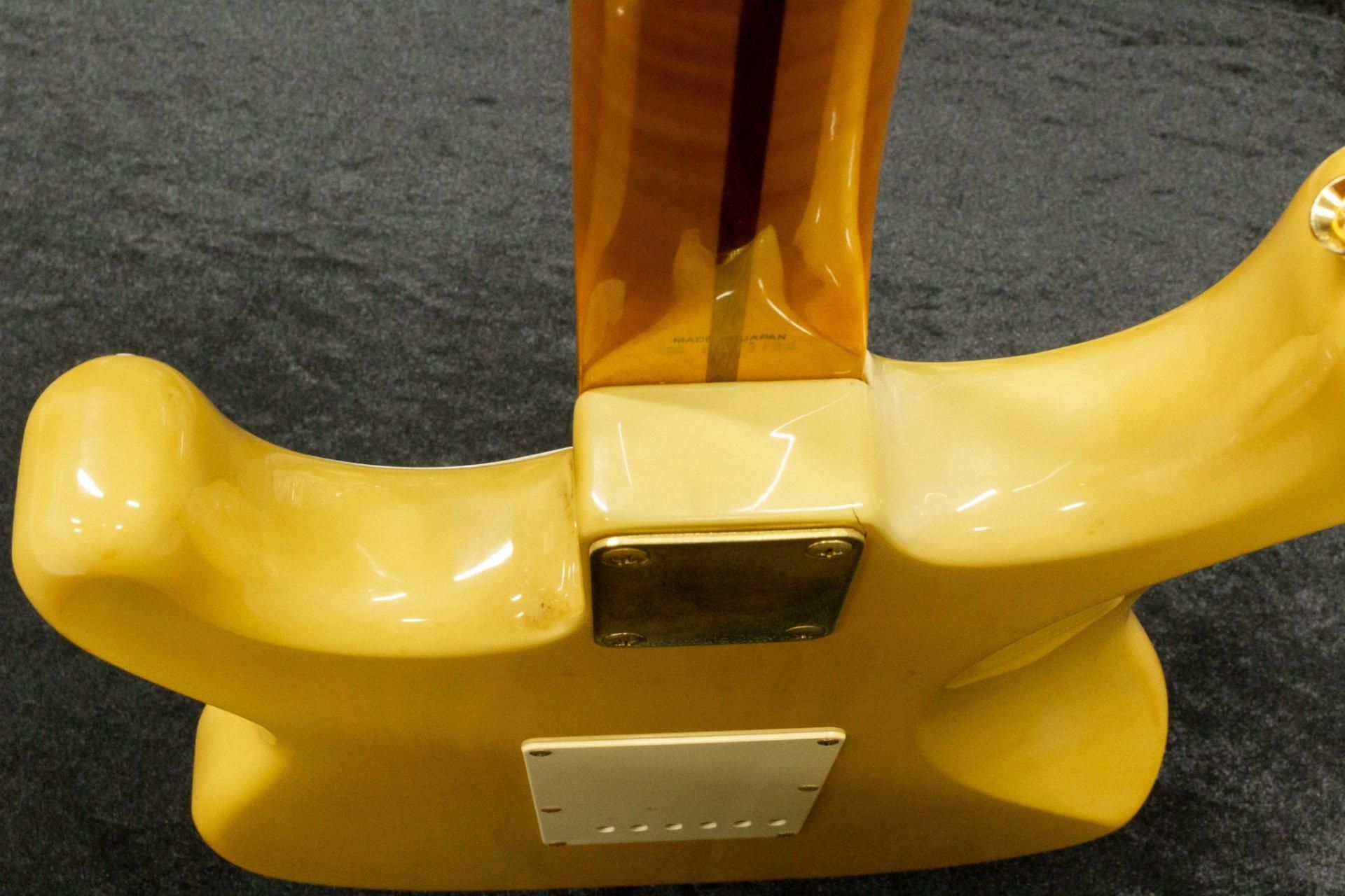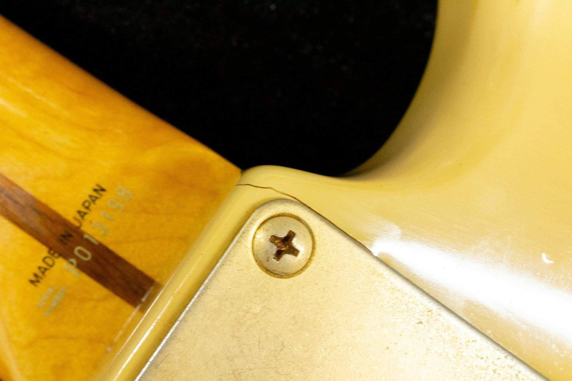 【used】Fender Japan / ST54-75RV OWB/M MADE IN JAPAN #P013198 3.34kg【TONIQ横浜】 送料無料 297,000円 2970 pt SOLD OUT 送料無料 297,000円 2970 pt SOLD OUT Fender(フェンダー)は言わずと知れたエレキギター・ベースのナンバーワンブランドです。 エリック・クラプトン、ジョン・メイヤー、リッチー・ブラックモアなど、数えきれないほどのトップアーティストに愛されています。 1954年にFender社からリリースされたストラトキャスターというモデルは、ソリッドギターの元祖であるテレキャスターの派生モデルとして登場しました。 革新的なデザインと汎用性の高さから数えきれない程のアーティストに愛され、登場から現在まで様々なジャンルのミュージックシーンを彩ってきました。 まさにエレキギターを代表する機種と言えます。 本モデルは高く評価されながらも消滅(Fenderブランドへ統合)してしまったFender Japanブランドのストラトキャスターです。 こちらの個体のネックポケットを確認致しました所、ST54-75RVと記載されておりましたが見ての通り、通常のモデルよりも明らかに高級な機種のように見えます。 そしてネックポケットには型番の他に最上位グレードである事を示すSのスタンプ、更にその上にはSCOTT ZIMMERMANという方のスタンプが押されております。 こちらのSCOTT ZIMMERMAN氏は、CBS Fenderにおいて様々な功績を残しており、Fender社初のヴィンテージリイシューモデルのプロトタイプを製作した事で知られています。 また、1984年にフラートン工場が売却される以前にSCOTT ZIMMERMAN氏が携わっていたモデルは、その再現度の高さから現在でも高く評価されております。 その後、ジャクソン・シャーベル社、フジゲン社と渡り歩き、フジゲンではマスタービルダーとして様々な楽器の開発やアーティストモデルのカスタムメイドを行っておりました。 フジゲンのキャリアの中でも特に有名なのが故カート・コバーン氏設計のJagstangのプロトタイプの製作を行った事です。 こちらのギターは2002年〜2011年までロックの殿堂に展示されていました。 このギターはそんなSCOTT ZIMMERMAN氏が携わっていたと思われるモデルです。 ボディはアッシュを採用。 カラーはテレキャスターの出荷時のフィニッシュで知られるオフホワイトブロンドで仕上げられております。 ネックポケット部にOWBサンプルと書かれておりましたので、通常のラインナップには無かった特別なカラーリングと予測できます。 ネックはワンピースのメイプルです。 一目見て良質だとわかるほど美しいフレイムメイプルを採用しております。 ピックアップは通常のRVシリーズではFender US-Vintageが搭載されておりますが、こちらのモデルはFender Lace Sensor Goldを3基搭載。 エリック・クラプトン氏の初期シグネチャーモデルに搭載されていた人気の高いピックアップです。 サウンドはクリア、且つFenderらしいエッジの効いた煌びやかさを兼ね備えております。 決して高音域が前に出すぎるわけではなく、しっかりとバランスよく仕上がっている印象です。 Fender Japanには1994年にStratocasterの誕生40周年を記念して登場したST54-150ASというアニバーサリーモデルが存在しますが、ネック、ボディ、ゴールドのハードウェア等を見ますとそのモデルにかなり近いスペックとなっております。 こちらはアニバーサリーモデルのプロトタイプとして製作された特別なモデルかもしれません。 激レアな1本。 この機会にいかがでしょうか? フレットの残りはおおよそ70%ほど。 トラスロッドの動作は若干硬めですが、90°程度の動作は確認済みです。 ネックの状態は良好です。 ボディや塗装面の状態は、傷や打痕、塗装のくすみなどがございます。 ゴールドパーツにくすみや錆、腐食が見られます。 ネックに5mm程の打痕が2ヵ所有り、ジョイントプレート取り付け穴付近に塗装割れがあります。 ボリュームポット、センタートーンポット、ピックアップセレクター、ストラップピンが交換されております。 Guitar shop TONIQの職人が演奏しやすく調整した上でお届けします。 serial number:#P013198 Weight:3.34kg Fret:70% remaining Truss rod:tight a little, but can work roughly 90° at least neck condition:Good control:1 volume, 2 tone, 5WAY selector body condition:There are many scratches, dents, dullness of painting. Gold parts can be dull, rust, and corrosion. There is a dent on the neck, and there is a crack on the jein plate part custom:Volume pot, tone pot, selector, strap pin high year:1993〜1994 accessories:none country of origin:Japan 付属品:トレモロアーム 文章:小澤鉄平 検品担当 : 小澤 TONIQ 3か月保証付き 頑丈な段ボール箱で発送します。 海外向けの発送にも対応します。 item will be packed with a hard cardboard box. we do ship internationally. 問い合わせ先 Contact Info TEL 045-548-6661 email : ozawa@bassick.jp 送料無料 297,000円 2970 pt SOLD OUT GIB三ヶ月保証について(再買取金額・状態保証等) 分割支払いの金利無料条件について この商品について問い合わせる 送料無料(一部商品を除く) おすすめ商品 【new】ROSIÉ / ROSIE Ultralight Bass Guitar Case【ベース用】 27,500円 
