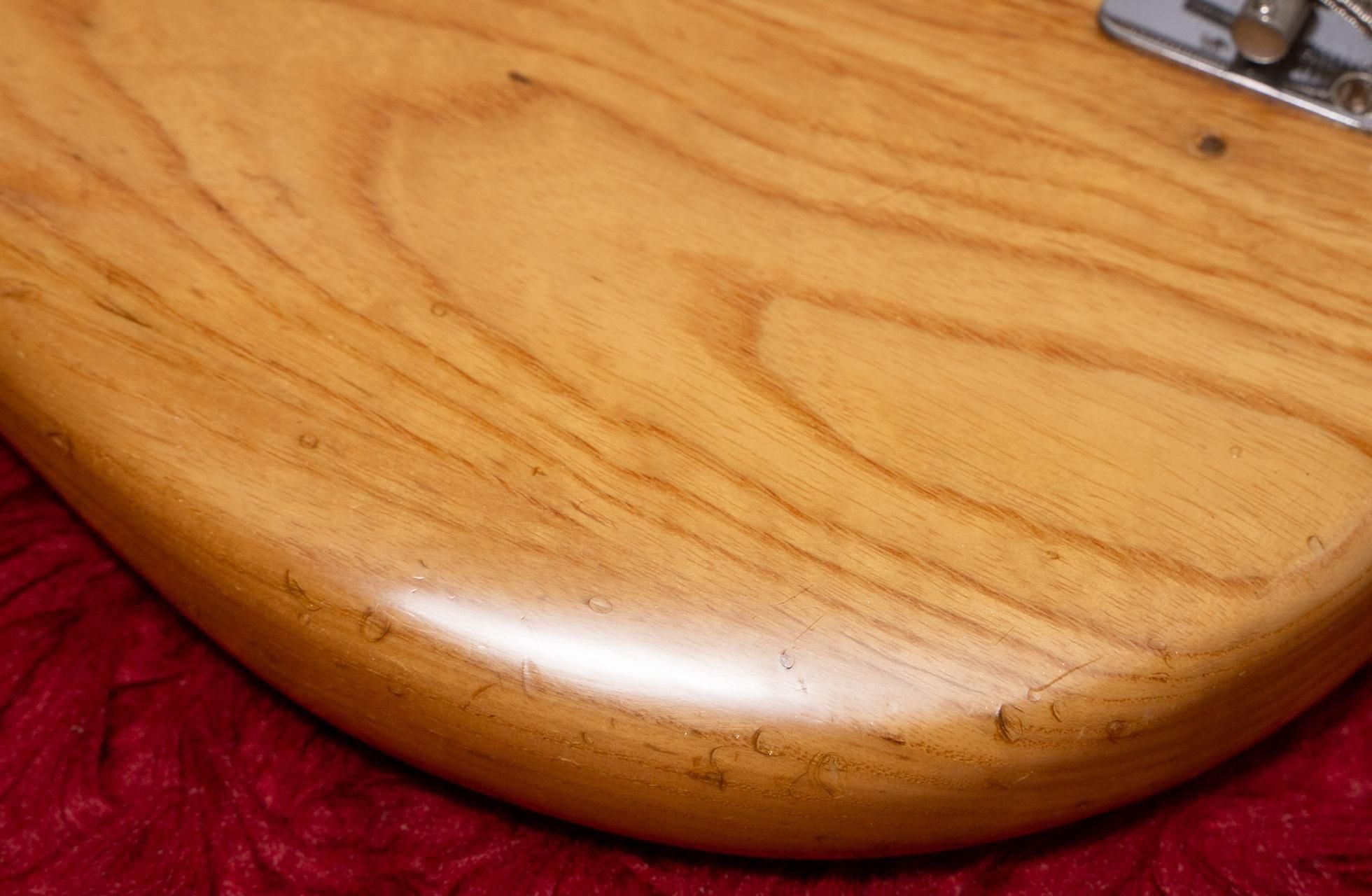 キャビティ内、ネックポケットの塗装を見ると、サンバーストからナチュラルにリフィニッシュされているように思われます。