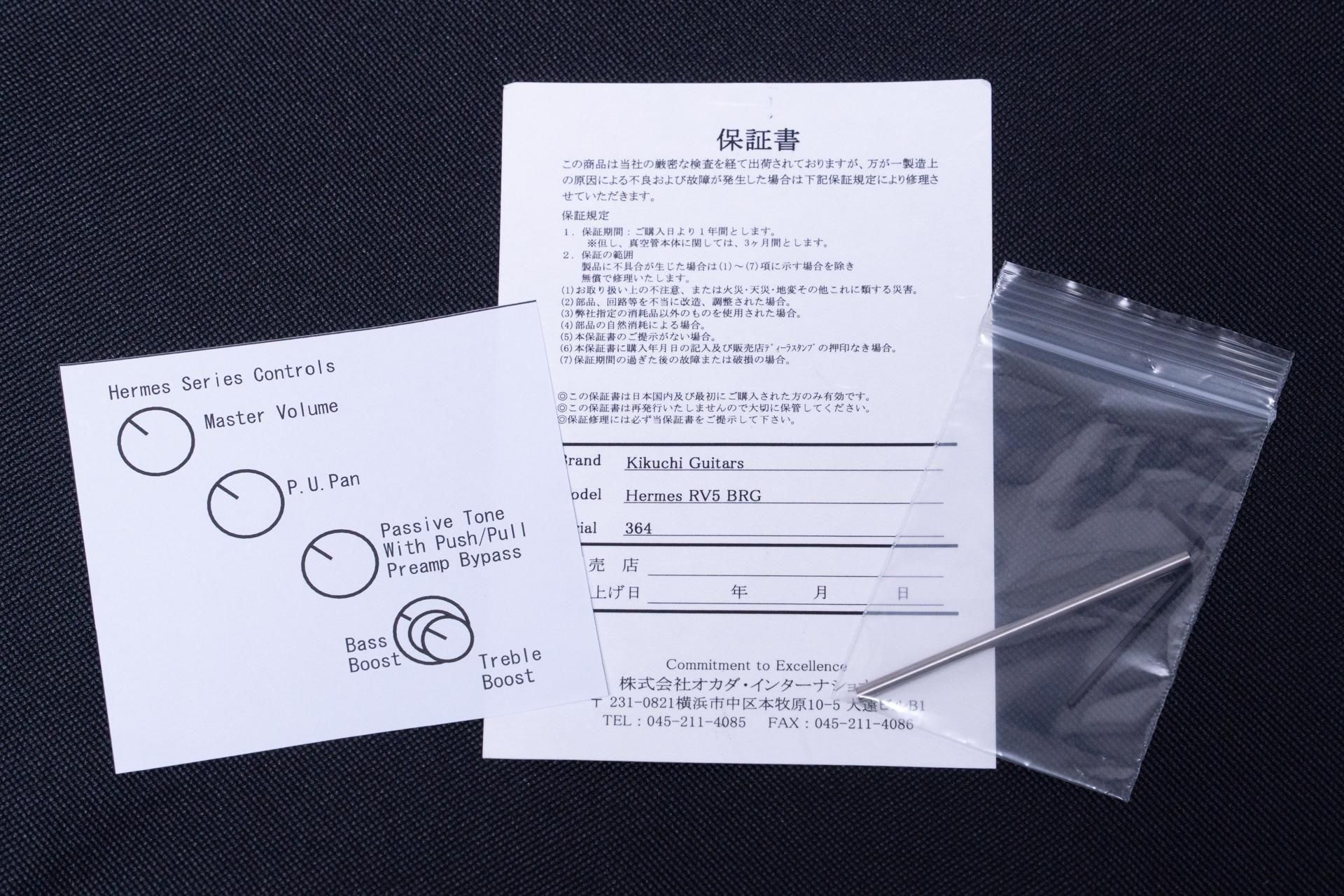 【new】Kikuchi Guitars / Hermes RV5 BRG 3.875kg #364【GIB横浜】 送料無料 396,000円 3960 pt SOLD OUT 送料無料 396,000円 3960 pt SOLD OUT Kikuchi Guitarsは特にサドウスキーに関わる仕事において多くのプロベーシストから絶大な信頼を得る菊地嘉幸氏(及びオカダインターナショナル社)が手掛ける新たなハイブランドです。 最初に登場した製品は全てが一点もののカスタムモデルでしたが、それに対してHermes seriesはスペック固定の量産型と言えるものです。 少し語弊があるかもしれませんが、日本製時代のSadowsky MetrolineがHermes series、TYOがカスタムモデルのような立ち位置です。 菊地さんがデザインする多くのベースの中でも特に定評のあるJBをモチーフとしたデザインです。 これまでの彼の仕事を洗練させ、より現代のベースらしくまとめあげられています。 ボディはAlder、指板はRosewoodとクラシックな選択。 カスタムモデルにおいてはチェンバードボディも多くありますが、Hermes Seriesにおいては全てソリッドボディです。 人によってはソリッドボディの方が好みだと思います。(個人的に僕はソリッドの方が好みでした) シェイプはディンキーで、フルサイズではありません。 この点は同社が手がけるThree Dotsとの違いの一つですね。 チューナー、ブリッジはHIPSHOTを採用。 世界的な定番になりましたね。 PUはDiMarzioが製造を担当した、スプリットコイルタイプ。 これはSadowsky Metrolineが日本で作られていた時代のものとも似たものです。 特徴的なのは、ローノイズであること、そしてトレブリーであること。 プリアンプはこのモデルのためにEMGが特別にデザインしたカスタムタイプ。 ベースとトレブルをブーストするのみとシンプルな仕様。 これが当然の如くピッタリとフィットしています。 ブーストしていった時にミドルレンジの凹みのピークが絶妙で、ベースがキュッとスタイリッシュに締まっていくよう。 それでいながら、ベースらしさを失わず、また美しい倍音感も保持したまま。 2バンドのEQでブーストすることの意味を雄弁に語るよう。 コントロールはボリューム、バランサー、トーン(push/pull SWでプリアンプバイパス)、トレブル/ベース。 出荷時の弦高は低めではありますがカスタムモデルほどではなく、その弾き心地は非常に良好。 普段フェンダー系のベースをフェンダーっぽいセッティングで弾いている人にとっても心地よいものかと思います。 昔から特に高く評価されているネック周りの精度が素晴らしく、そのクオリティは十分に発揮されています。 ネックシェイプは少し平らで薄め。 極めて速いスピード感のある弾き心地が特徴的。 それでありながら十分な低音の量を備え、倍音豊富でトレブリーなサウンドに仕上げられています。 菊地氏が現代においてベースを作るからこそ実現した、至高の一本です。 Model:4st or 5st Body : Ash 2-Piece (Solid) or Alder 2-Piece (Solid) Neck:Maple, Thin Matte Nitro Fingerboard:Maple or Rosewood Fingerboard Radius:12″ (305R) Nut Material:Tusq Nut Width:4st:37mm, 5st:46mm Fret:22F Scale:864mm (34″) Bridge:4st:Hipshot 20mm Spacing, 5st:Hipshot 19mm Spacing Tuner:Hipshot License Ultra-Light Pickups:4st:DiMarzio 4HC in 60’s Locations, 5st:DiMarzio 5HC in 60’s Locations Preamp:Kikuchi Guitars Original Preamp Controls:Master Volume、Pickup Balancer、Passive Roll Off Tone (w/Pull Switch for Preamp Bypass)、Treble/Bass Boost Body Finish:Polyester String:4st:D’Addario .045 – .105, 5st:D’Addario .045 – .130T Case:Original Semi Hardcase 付属品 :セミハードケース、保証書 文章:嵯峨駿介 メーカー保証つき 頑丈な段ボール箱で発送します。 海外向けの発送にも対応します。 item will be packed with a hard cardboard box. we do ship internationally. 問い合わせ先 Contact Info LINE : vwj2699r email : info@bassick.jp TEL : 045 594 7308 送料無料 396,000円 3960 pt SOLD OUT GIB三ヶ月保証について(再買取金額・状態保証等) 分割支払いの金利無料条件について この商品について問い合わせる 送料無料(一部商品を除く) おすすめ商品 【new】ROSIÉ / ROSIE Ultralight Bass Guitar Case【ベース用】 27,500円 【new】GIB BASIC / THEギター専用蜜蝋ワックス COCO 15g【GIB横浜】 2,090円 【new】Baboon / THE ギター専用湿度調整剤 990円 【new】GIB BASIC / Neofit Strap Black【GIB横浜】 4,950円 関連商品 【new】GIB BASIC / THEギター専用蜜蝋ワックス COCO 15g【GIB横浜】 【new】ROSIÉ / ROSIE straps Black with Black Details 3.0inch【横浜店】 NEW ARRIVALS新着アイテム 【used】Fender / Engine Room LVL5 Power Supply【GIB横浜】 9,900円 【used】PreSonus / FADERPORT【GIB横浜】 12,100円 【new】Provision / VPB-GIB-RELIC-#003-J-ALD-3TS 3.920kg #25111811【GIB横浜】 517,000円 【used】SAMSON / MDA1 モノラル/アクティブDI【GIB横浜】 4,400円 【used】SolidGoldFX / Surf Rider ? Coral Pink【GIB横浜】 23,100円 【used】ZOOM / B2 Four【GIB横浜】 23,100円 【used】BOSS / LMB-3 Bass Limiter Enhancer 【GIB横浜】 7,700円 【used】ZOOM / B3【GIB横浜】 17,600円 【new】Kikuchi Guitars / Hermes M70-4 TWH 3.720kg #537【GIB横浜】 440,000円 【new】Kikuchi Guitars / Hermes M70-4 NAT 4.140kg #541【GIB横浜】 440,000円 【used】HISTORY / TH-BJ4/R WH 4.400kg #I060197【GIB横浜】 132,000円 【used】KLARK TEKNIK / DN100