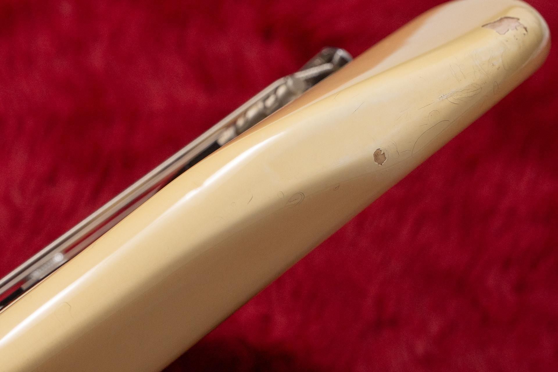 【used】Fender Japan / PB62-98 VWH PJ Mod. 1982 4.120kg 【GIB横浜】 送料無料 220,000円 2200 pt SOLD OUT 送料無料 220,000円 2200 pt SOLD OUT Fender(フェンダー)は言わずと知れたエレキギター・ベースのナンバーワンブランドです。 James Jamerson、 Bobby Vega、 Michael Leagueなど、数えきれないほどのトップアーティストに愛されています。(敬称略) Precision Bassは1951年に世界初のフレット付きのソリッドエレキベースとして登場し、半世紀以上にわたって世界中のベーシストに愛されています。 Fender Japanは日本製のFenderとして80年代にスタートしましたが、残念ながら現在は廃止されFender本体に統合されてしまいました。 しかしながら、同ブランドのクオリティは現在も多くのアーティストに支持されており、現在も求められ続けています。 こちらは1982年製造のPB62-98と思われる個体です。 ネックエンドに10/7/82とサインがあります。 ネックポケットにはAスタンプがあります。 また、ヘッドトップの本来MADE IN JAPANとあるデカールが潰されているように見えます。 この年代はジョイントプレートにシリアルの刻印がありますが、交換されているため不明です。 塗装の質感はラッカーのように見えます。 ネックPUは当時オリジナルのグレイボビンだと考えられます。 以上のことからPB62-98である可能性がかなり高いです。 Fender Japan初年度の最上位機種ですね。 ボディはAlder、指板はRosewoodとクラシックな仕様です。 PUはネックPUにオリジナルのグレイボビン、ブリッジPUはレッドボビンです。 レッドボビンとは1982~84年頃のAmerican Vintage、Fender Japanの上位機種に搭載されていた少し珍しいものです。 これぞPrecision Bassといった野太い低音域とオープンな中音域が魅力的。 ブリッジPUをミックスすれば、ジャズベースのようなキレが加えられます。 変わらないスタンダードなサウンドはR&Bやロック、ポップスなど、あらゆるジャンルにフィットします。 フレットの残りはおおよそ 80% ほど。 トラスロッドの状態は、良好です。 ネックの状態は、良好です。 ボディや塗装面は、スクラッチ傷、打痕、塗装剥がれが見受けられ、使用感があります。フィンガーレスト、ブリッジカバー、ピックアップフェンス取り付け用のビス穴の跡も見受けられます。 電装系の状態は、良好です。 ブリッジPUにレッドボビンの83年製Fender PUが増設されています。それに伴いコントロールはネックPUボリューム/ブリッジPUボリューム、マスタートーンに変更されています。ネックPUボリューム/ブリッジPUボリュームポット、コンデンサーが交換されています。ピックガードとボディの間にノイズ対策のアルミのプレートが挟まれています。ジョイントプレートが交換されています。 コントロール : ネックPUボリューム/ブリッジPUボリューム、マスタートーン ナット幅 : 42.8mm ブリッジ部弦間ピッチ : 19.0mm スケール : 34Inch 製造年 : 1982 製造国 : JAPAN セットアップ時にはプロミュージシャンからの信頼が厚いD'addario EXLを使用しています。 力強いアタック感と豊かな倍音が特徴的で、まさにスタンダードと呼ぶに相応しい性能。 楽器の性能やキャラクターを最大限に引き出す上質な弦ですので、あわせてお楽しみください。 GIBの職人が演奏しやすく調整した上でお届けします。 付属品 : なし 文章 : 寺尾竜馬 検品担当 : 平山 商品写真 : 若槻 GIB 3か月保証付き ◯GIB, TONIQ保証について ●メンテナンス 永久無料 当店でご購入いただいた楽器は、「弦振動に関するセットアップ」(通常4,400円)を永久に無料でご利用いただけます。(要予約) ・名前を記入した保証書のご提示をお願いします。 ・GIBとTONIQの実店舗・オンラインショップでご購入されたご本人のみが対象です。 ・送料などの諸経費はご負担頂くようお願いします。 ●再買取金額保証 ご購入後、6ヶ月以内にご購入品を手放す際には当店にて買取金額を保証いたします。金額は新品は50%、中古は70%です。 ●不良の保証 ベーシック株式会社が販売した商品は不良に対する保証を行います。委託品などの一部商品を除いてご購入から一定の保証期間中、正常な範囲内でのご使用にて発生した故障については無料での修理(不可能な場合に限り返品・返金)を行います。 保証期間は中古商品は3ヶ月、新品商品は1年です。 次の場合は保証期間内でも有償での対応となりますのでお気をつけください。 ・輸送、移動、落下等により生じた故障及び損害の場合。 ・消耗品を交換する場合。 ・火災、地震、塩害、ガス害、異常電圧による故障及び、損傷の場合。 ・取扱説明書に記載の注意事項に反するお取り扱いによって生じた故障、損害の場合。 ・弊社以外が修理、改造された部分が故障・損傷した場合。 ・保証書にお名前、モデル名、シリアルなどの記入がない場合。あるいは字句を書き換えられた場合。 ・保証書の提示がない場合、または紛失した場合。 (保証の提供は日本国内でのご購入に限ります) ●下取りありで最大15%OFF ご購入の際、下取りサービスを