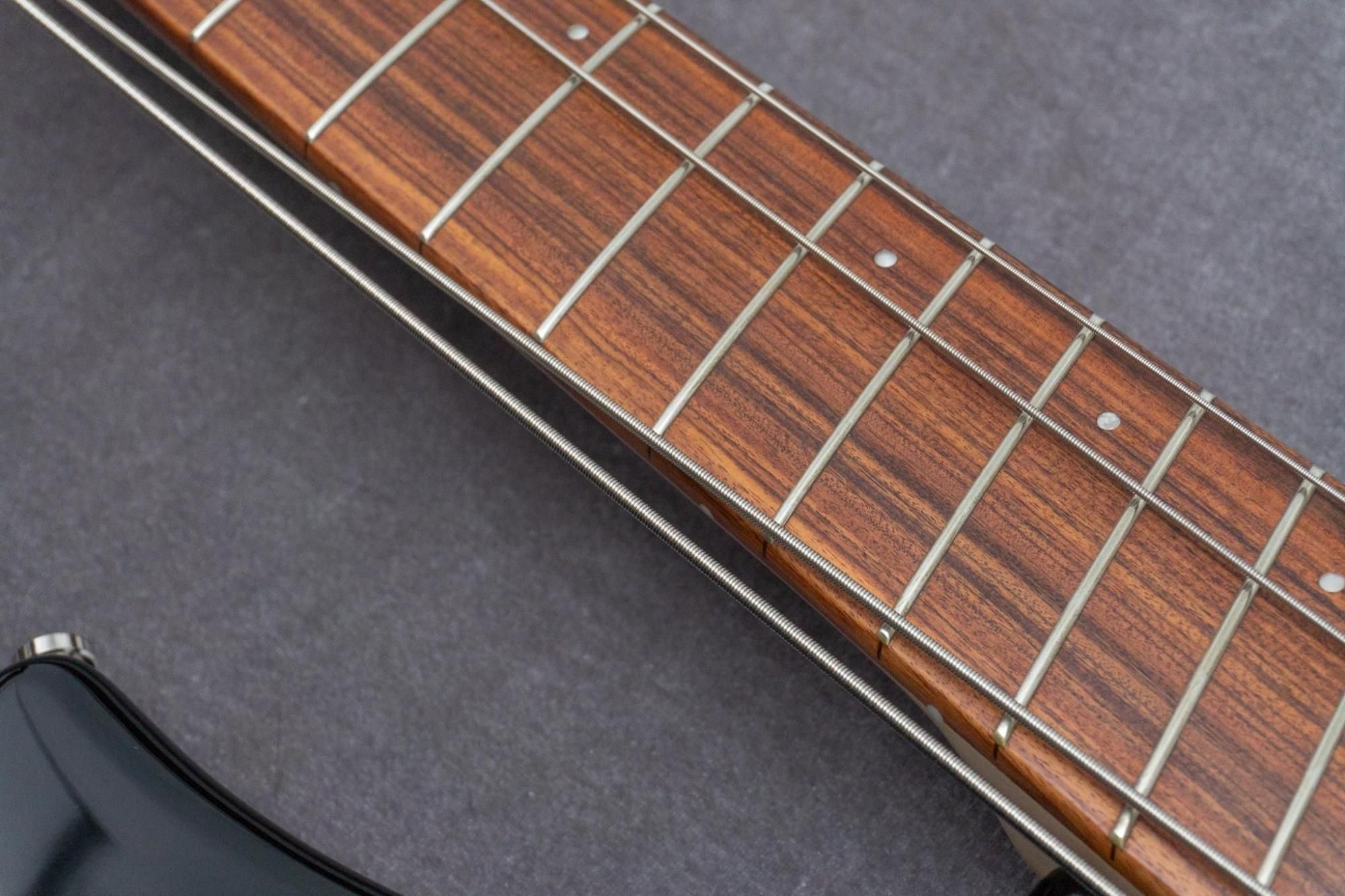 基本的なデザインは上位機種と同様で、4弦では36.25インチ、1弦では34インチノマルチスケール。