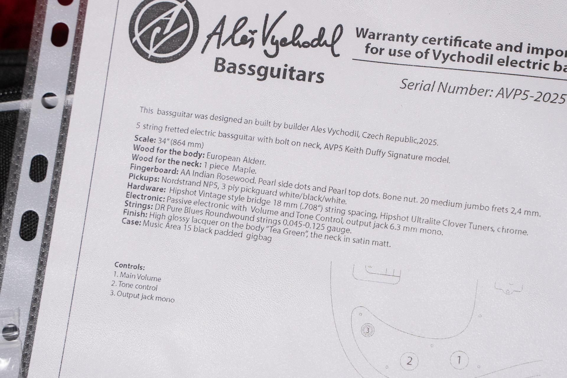 【new】AV BASSES / AVP5 Tea Green Glossy 3.960kg #AVP5-2025-03【GIB横浜】 送料無料 605,000円 6050 pt カートに入れる 送料無料 605,000円 6050 pt カートに入れる AV BassesはJamiroquaiのベーシストであるPaul Turnerが新たに使いだしたとして、大きな注目を浴びたチェコのハイエンドブランドです。 同ブランドはプロベーシストであるAles Vychodilが1990年代にスタートしました。 当時、大手の楽器メーカーが数多くのベースを市場に供給しましたが、彼の要求に応えられるものはありませんでした。 その自らのニーズを満たすために彼は自身の手でカスタムベースの製作を始めます。 2000年代には欧米のブティックブランドのOEM製造をスタートし、その製造技術の高さを世に知らしめます。 2019年にドイツで行われたGuitar Summitで出会い、何度か継続してオーダーをしており、安定したクオリティを提供してくれています。 本モデルはFenderのスタイルに即した5弦PBモデルです。 2025年のGuitar Summitに展示されていたものです。 このシリーズはKeith Duffy(The Corrs、 Maire Brennan)、Paul Turner(Jamiroquai)などの協力を経てさらに完成度が高まりました。(敬称略) ボディにはEuropean Alder、指板にはIndian Rosewoodと60'sライクのクラシックな構成。 ボディとネックのフィニッシュはヴィンテージスタイルのラッカーです。 取り扱いに気を付ける必要はありますが、やはりこれでなければ得られないルックスと、サウンドがあります。 ピックアップはNordstrand NP5を採用しています。 チューニングマシンおよびブリッジはHIPSHOT製です。 サーキットはCTS、 SWITHCRAFTを使用したパッシブ仕様。 どの弦、どのポジションにおいてもスッと伸びるスムースなサウンドが魅力的。 豊かなミドルレンジを持った、おおらかでビッグなPBサウンドはミュージシャンの演奏を心強くサポートします。 トラディショナルでありながら、わずかに端正な印象のトーンは多くのアンサンブルでベースらしいサウンドを奏でます。 SPECS Scale: 34"" (864 mm) Wood for the body : European Alder. Wood for the neck : 1 piece Maple, Fingerboard : AA Indian Rosewood. Pearl side dots and Pearl top dots. Bone nut. 20 medium jumbo frets 2,4 mm. Pickups : Nordstrand NP5, 3 ply pickguard white/black/white. Hardware : Hipshot Vintage style bridge 18 mm (.708"") string spacing, Hipshot Ultralite Clover Tuners, chrome. Electronic : Passive electronic with Volume and Tone Control, output jack 6.3 mm mono. Strings : DR Pure Blues Roundwound strings 0.045-0.125 gauge. Finish : High glossy lacquer on the body ""Tea Green"", the neck in satin matt. Case : Music Area 15 black padded gigbag ショーモデルのため、多少のスクラッチ傷や打痕があります。 ご了承ください。 GIBの職人が演奏しやすく調整した上でお届けします。 付属品 : ギグバック、説明書兼保証書、六角レンチ2種 文章 : 寺尾竜馬 検品担当 : 石川 商品写真 : 若槻 メーカー保証つき ◯GIB, TONIQ保証について ●メンテナンス 永久無料 当店でご購入いただいた楽器は、「弦振動に関するセットアップ」(通常4,400円)を永久に無料でご利用いただけます。(要予約) ・名前を記入した保証書のご提示をお願いします。 ・GIBとTONIQの実店舗・オンラインショップでご購入されたご本人のみが対象です。 ・送料などの諸経費はご負担頂くようお願いします。 ●再買取金額保証 ご購入後、6ヶ月以内にご購入品を手放す際には当店にて買取金額を保証いたします。金額は新品は50%、中古は70%です。 ●不良の保証 ベーシック株式会社が販売した商品は不良に対する保証を行います。委託品などの一部商品を除いてご購入から一定の保証期間中、正常な範囲内でのご使用にて発生した故障については無料での修理(不可能な場合に限り返品・返金)を行います。 保証期間は中古商品は3ヶ月、新品商品は1年です。 次の場合は保証期間内でも有償での対応となりますのでお気をつけください。 ・輸送、移動、落下等により生じた故障及び損害の場合。 ・消耗品を交換する場合。 ・火災、地震、塩害、ガス害、異常電圧による故障及び、損傷の場合。 ・取扱説明書に記載の注意事項に反するお取り扱いによって生じた故障、損害の場合。 ・弊社以外が修理、改造された部分が故障・損傷した場合。 ・保証書にお名前、モデル名、シリアルなどの記入がない場合。あるいは字句を書き換えられた場合。 ・保証書の提示がない場合、または紛失した場合。 (保証の提供は日本国内でのご購入に限ります) ●下取りありで最大15%OFF ご購入の際、下取りサービスをご利用いただくと販売価格が10%OFFになります。(委託品は対象外。下取り金額が販売金額の20%以上の場合のみ適用可能です。) さらに毎月開催される買取強化キャンペーンの対象楽器を下取りに出していただいた場合、割引率は15%になります。 頑丈な段ボール箱で発送します。 海外向けの発送にも対応します。 item will be packed with a hard cardboard box. we do ship internationally. 問い合わせ先 Contact Info LINE : vwj2699r email : info@bassick.jp TEL : 045 594 7308 送料無料 605,000円 6050 pt GIB三ヶ月保証について(再買取金額・状態保証等) 