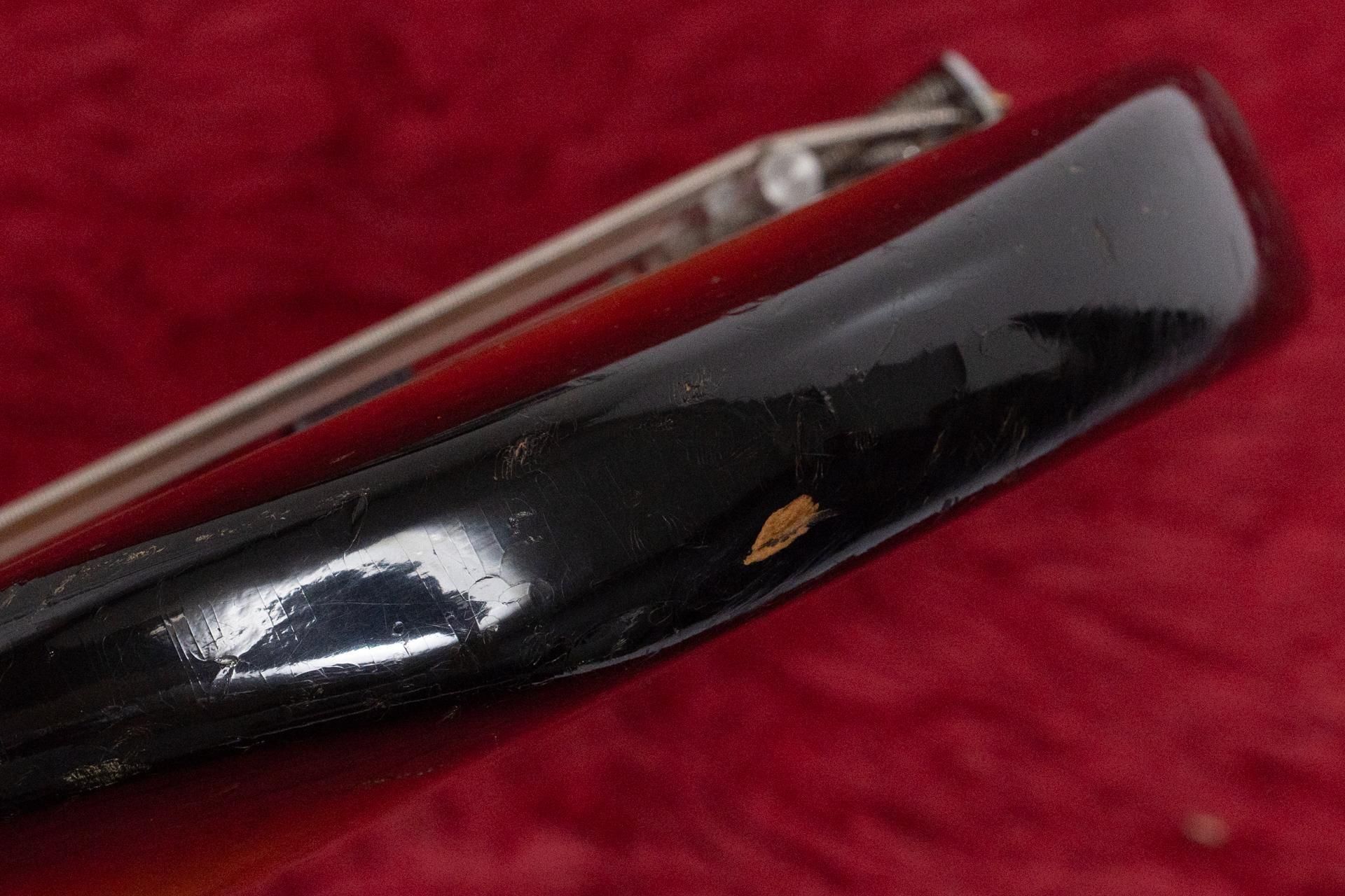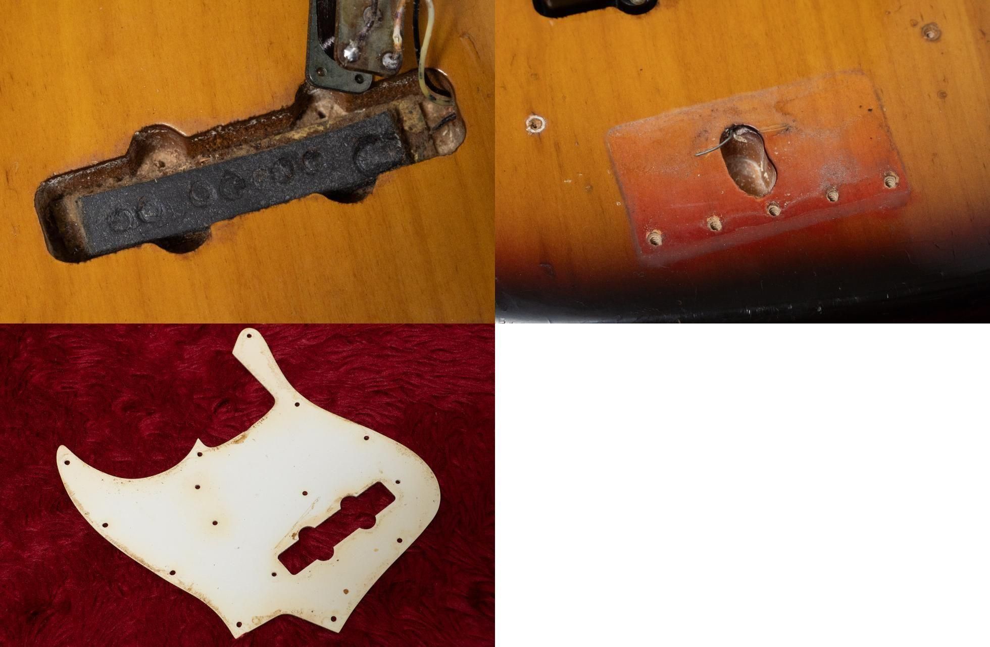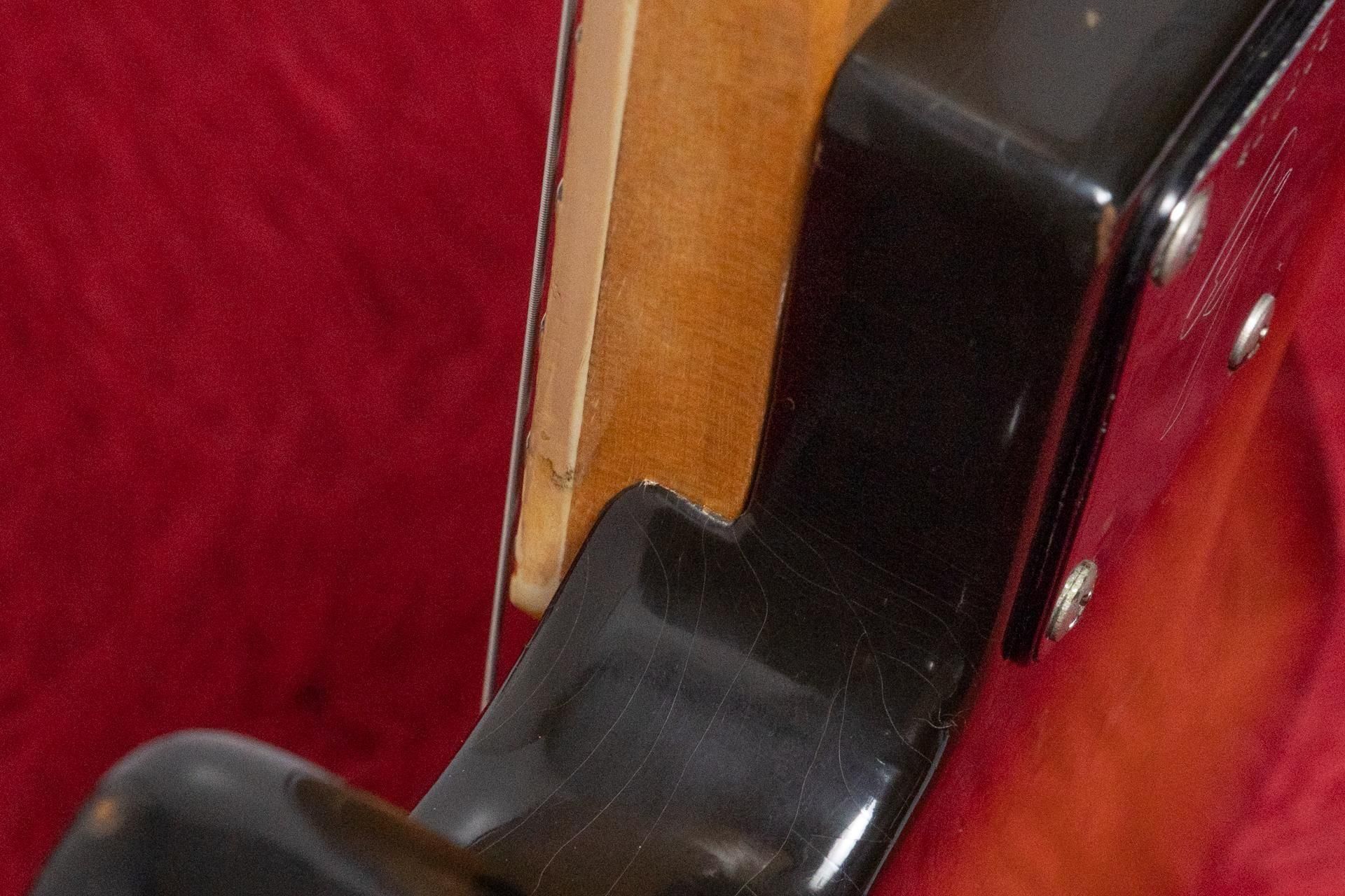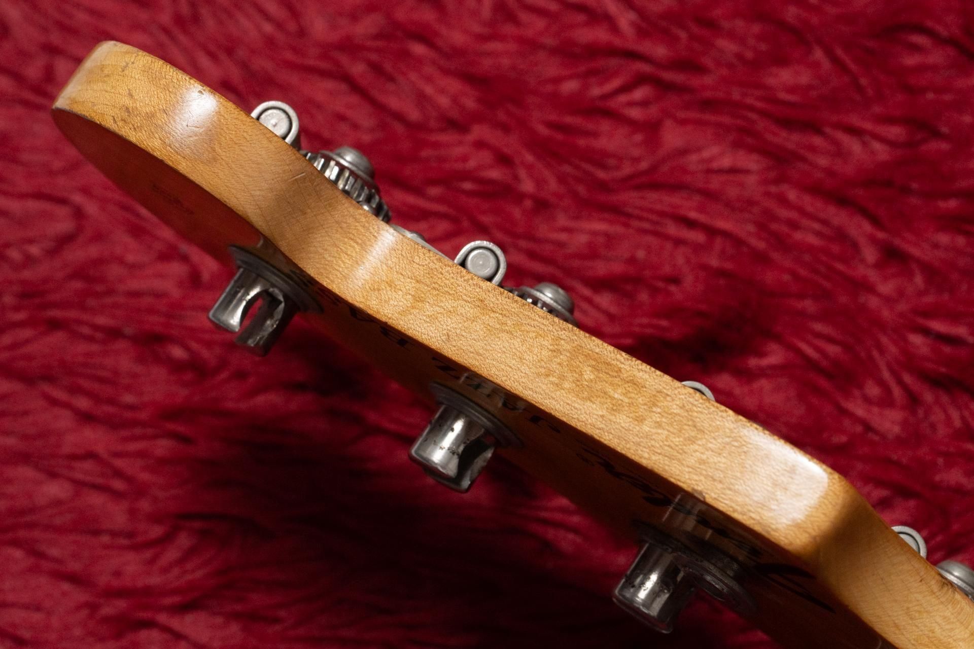 ボディや塗装面は、全体的に経年によるフェザーチェック、打痕、塗装剥がれ、スクラッチ傷が見受けられます。